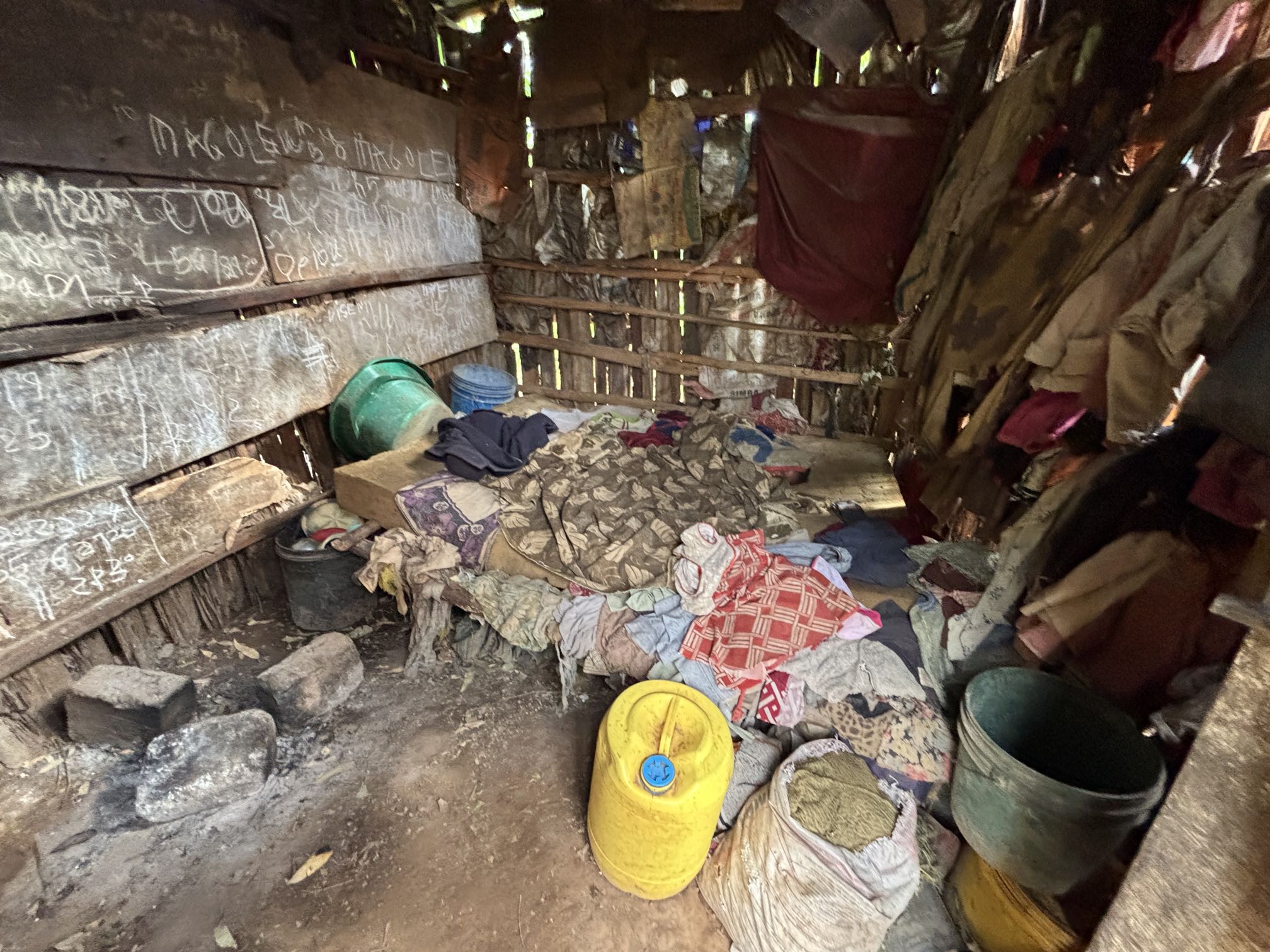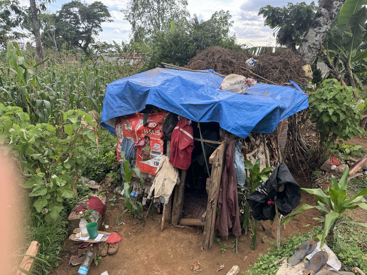 Deze mensen leven vaak met een grote familie in zelfgemaakte hutjes om in ieder geval nog onderdak te hebben.